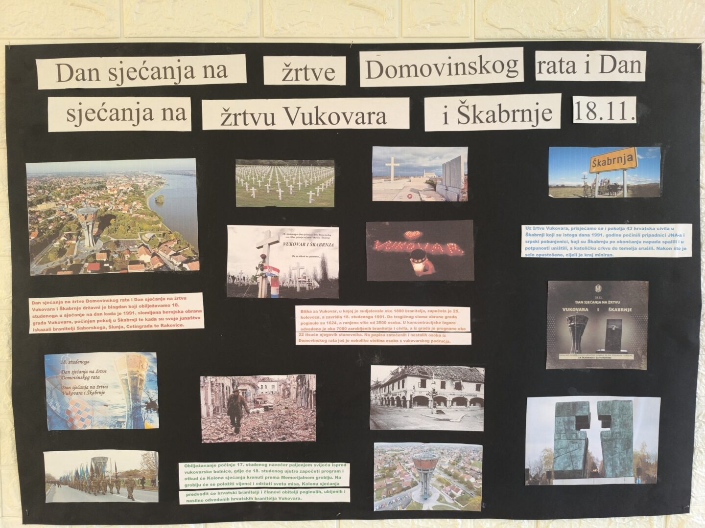Dana 18. studenog smo u holu naše škole obilježili Dan sjećanja na žrtve Domovinskog rata i Dan sjećanja na žrtvu Vukovara i Škabrnje.