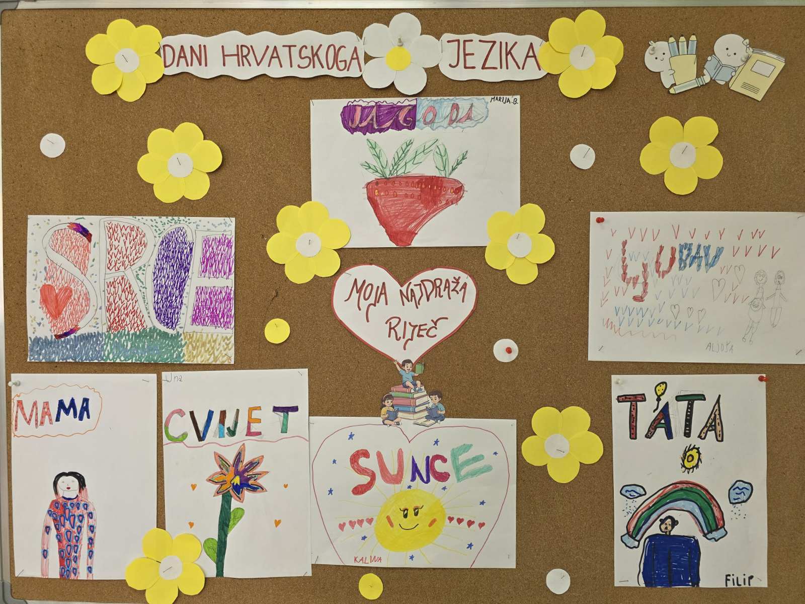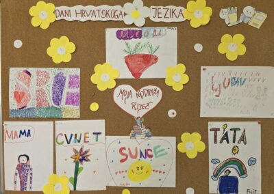 Učenici 1. razreda odabrali su svoju najdražu riječ. Svaki učenik je riječ napisao, nacrtao i ukrasio, a njihovi su radovi izloženi na panou u školi. Na taj su način pokazali koliko riječi mogu biti lijepe, zanimljive i važne u svakodnevnoj komunikaciji.